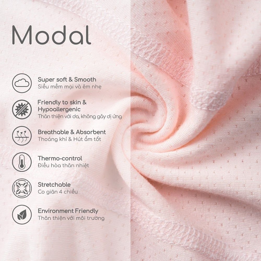 4. Thành phần sợi 100% micro modal (sợi gỗ sồi), mềm mại và co giãn 4 chiều.