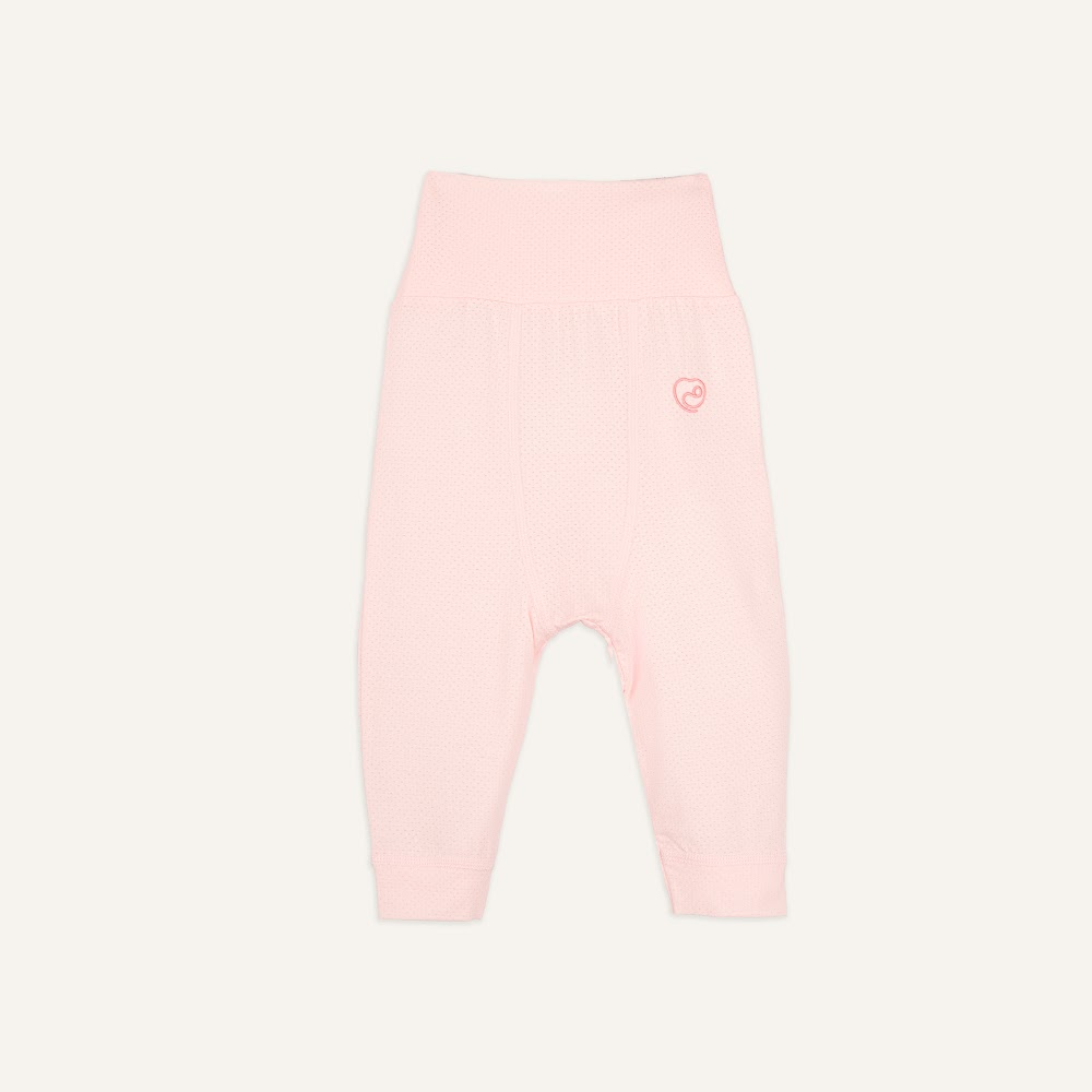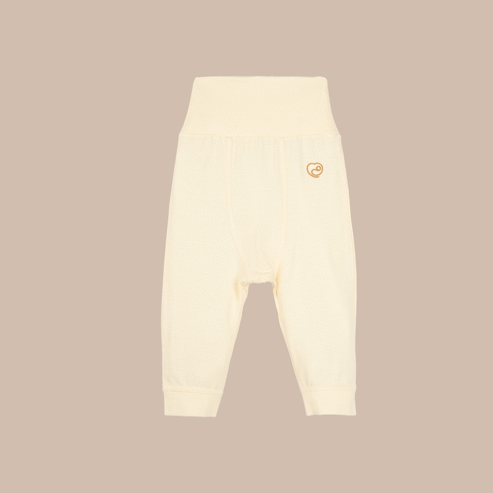 1. Cạp quần cao, bản rộng, không chun, ôm mềm mại giúp bé tránh giật mình, giữ ấm bụng sữa.