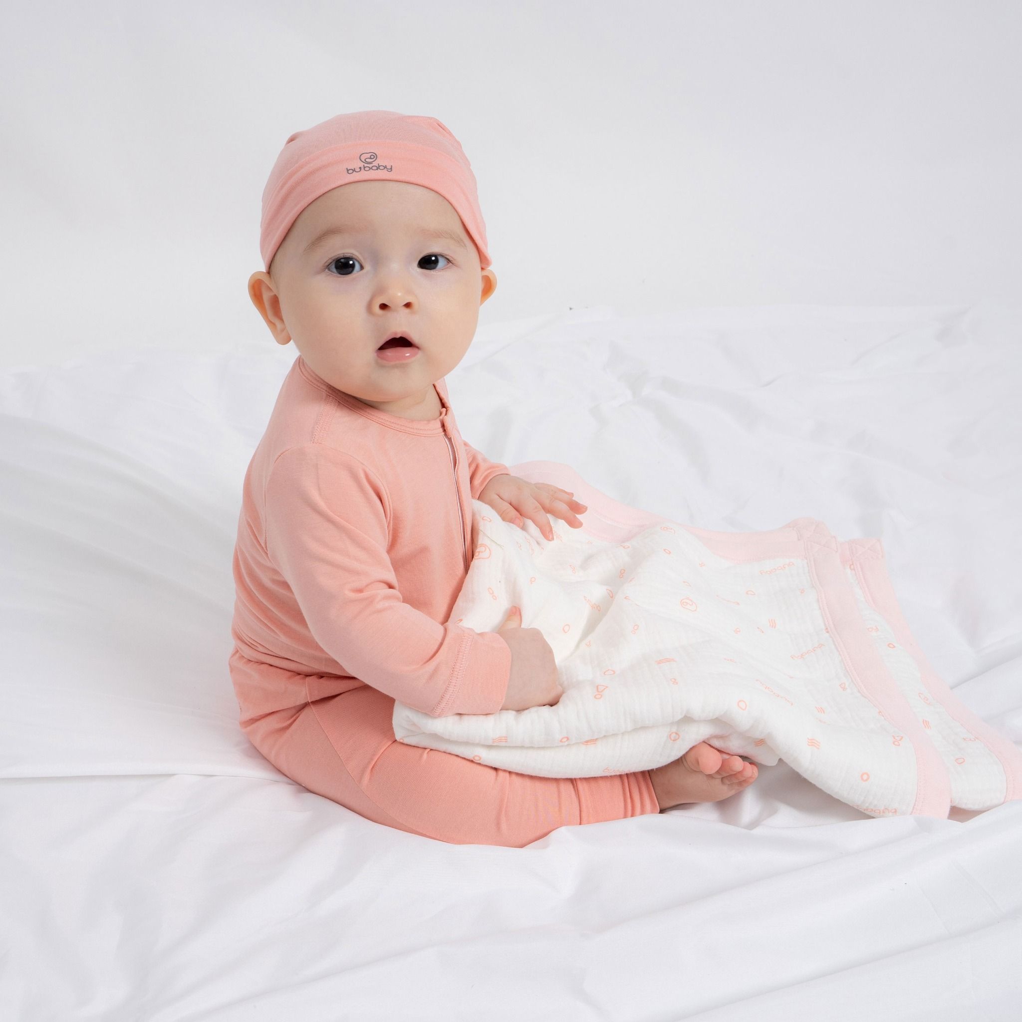 | Multi-purpose Swaddling Towel made from super lightweight, soft, spongy, and absorbent Muslin fabrics. It is a multi-purpose product: besides being a towel, it can be used as a thin blanket, a pillow, and a windbreak swaddling blanket when going out. You also can spread it and lie your baby down. SKU: AMU590001 - Material: BU Muslin - Dimensions: 95cm x 95cm - Having achieved OEKO-TEX 100 Certificate Product Class 1 (the highest level of safe textile products for babies & children) - Made in Vietnam. BU Muslin is characterized by a breathable fabric surface due to using the woven pattern. This woven pattern has a checkerboard-like warp and weft yarn system, so the product usually limits longitudinal and transverse stretch and only a little diagonal stretch. Its outstanding advantages are fast absorption, quick drying, and extremely light and soft. We recommend water washing BU cloths rather than dry cleaning. Turn the product inside out when washing, wash with a product of the same color, use cold water on Drycare level/Normal wash, and remember to button and zip up to prevent ruffles in the fabric. Moreover, we recommend handling wash, gently squeezing, and not wringing/twisting the BU product to prevent the fibers from shrinking.