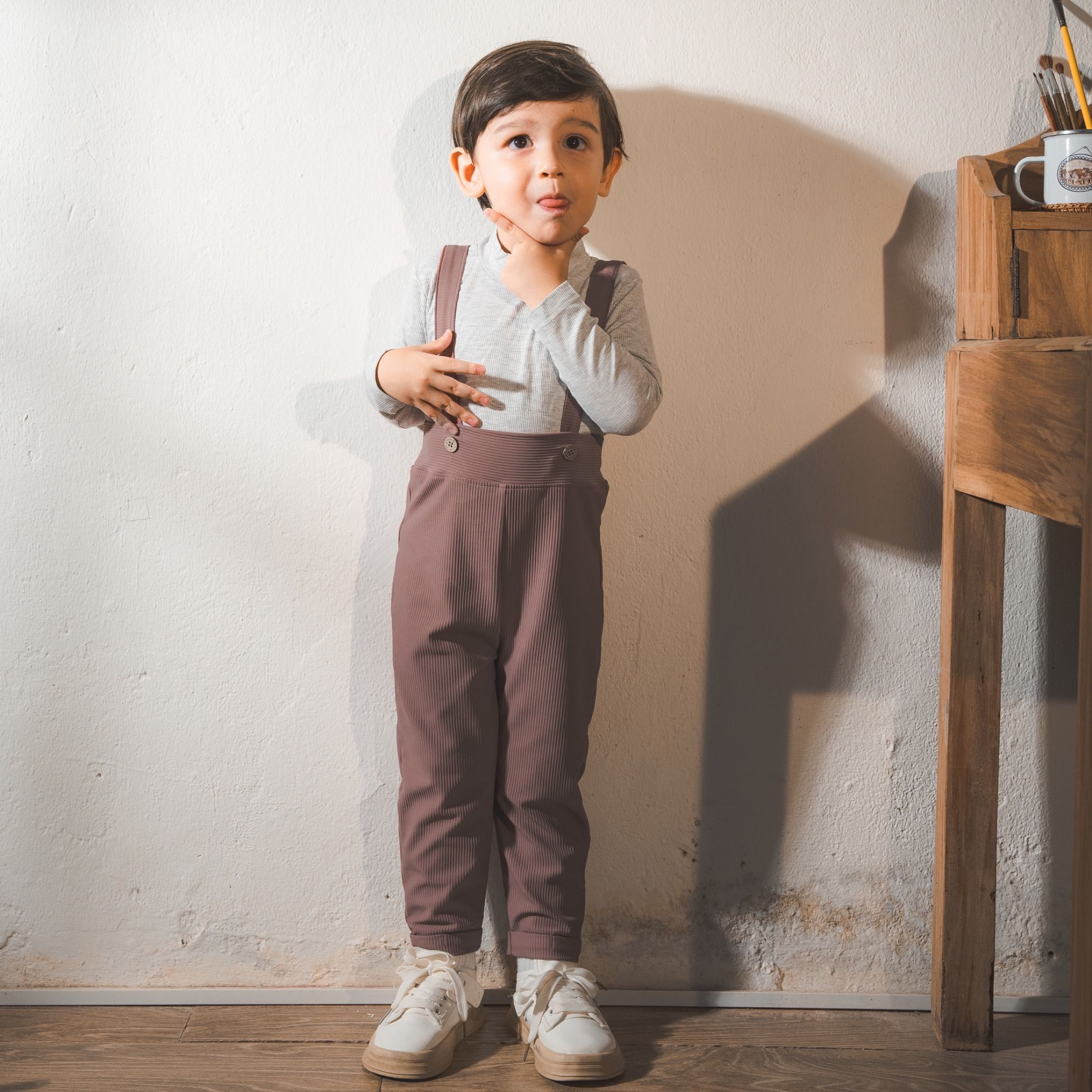 Quần yếm dài túi ốp sau với dây yếm điều chỉnh linh hoạt. Phối túi tạo điểm nhấn thời trang. Cạp quần bản rộng, chun ôm mềm mại. Chất liệu 100% pure cotton (bông tinh khiết), an toàn cho làn da nhạy cảm.