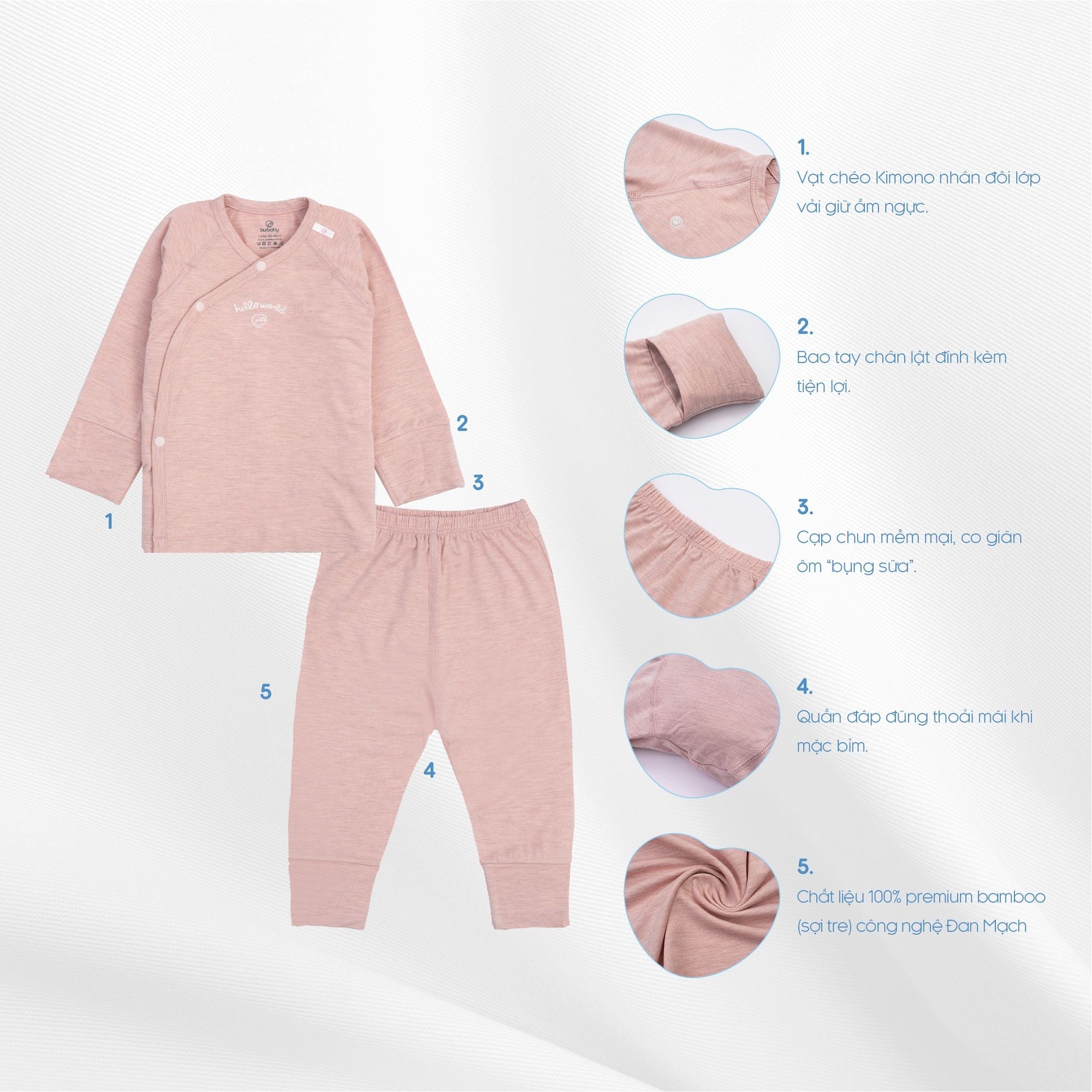 Bambus là chất liệu vải tre của BU được ứng dụng công nghệ Đan Mạch, siêu mềm mại và an toàn, lý tưởng cho da nhạy cảm. Đặc biệt, bambus có khả năng chống dị ứng, kháng khuẩn, kháng nấm tự nhiên; khả năng điều hòa thân nhiệt và chống tia UV.