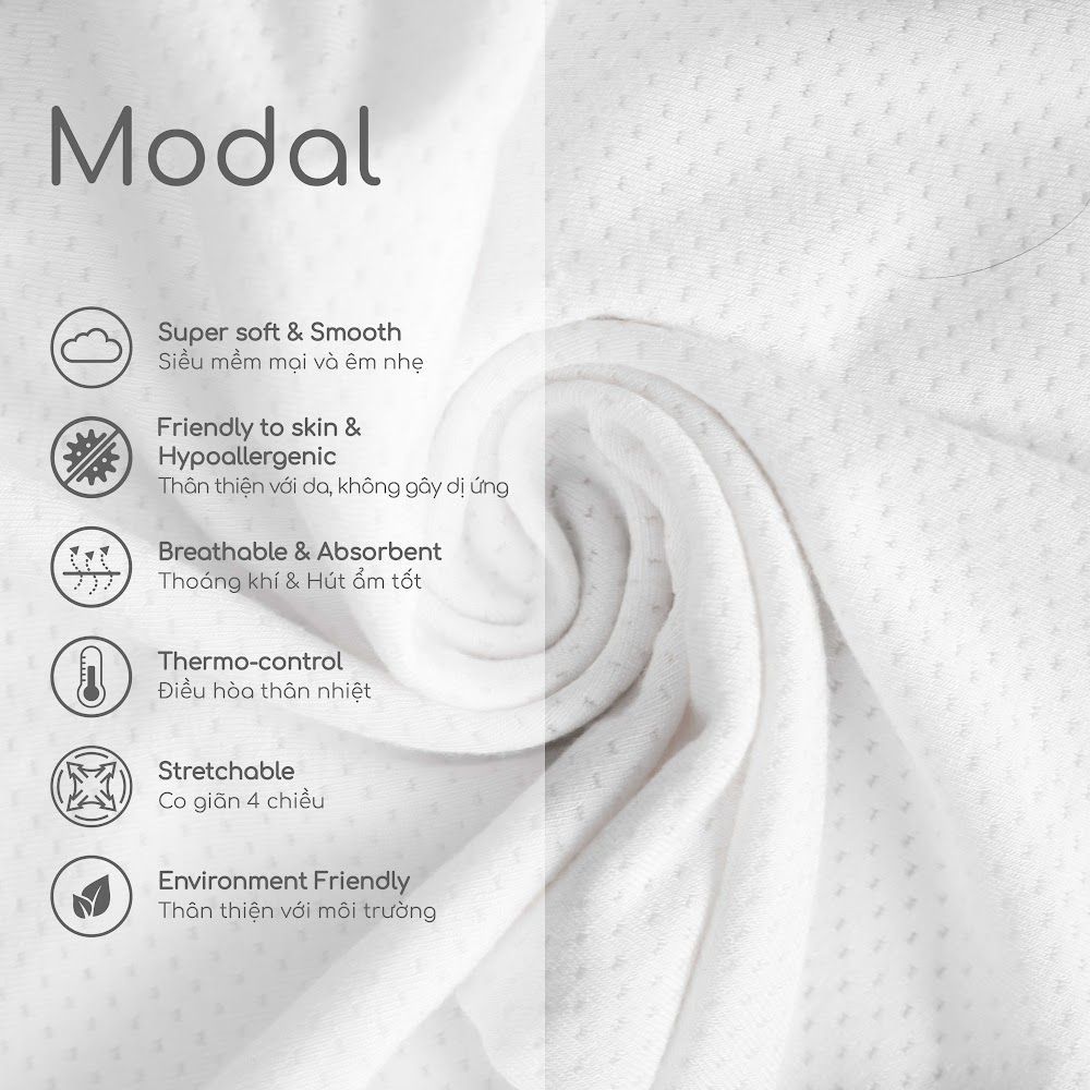 5. Thành phần sợi 100% micro modal (sợi gỗ sồi), mềm mại và co giãn 4 chiều.
