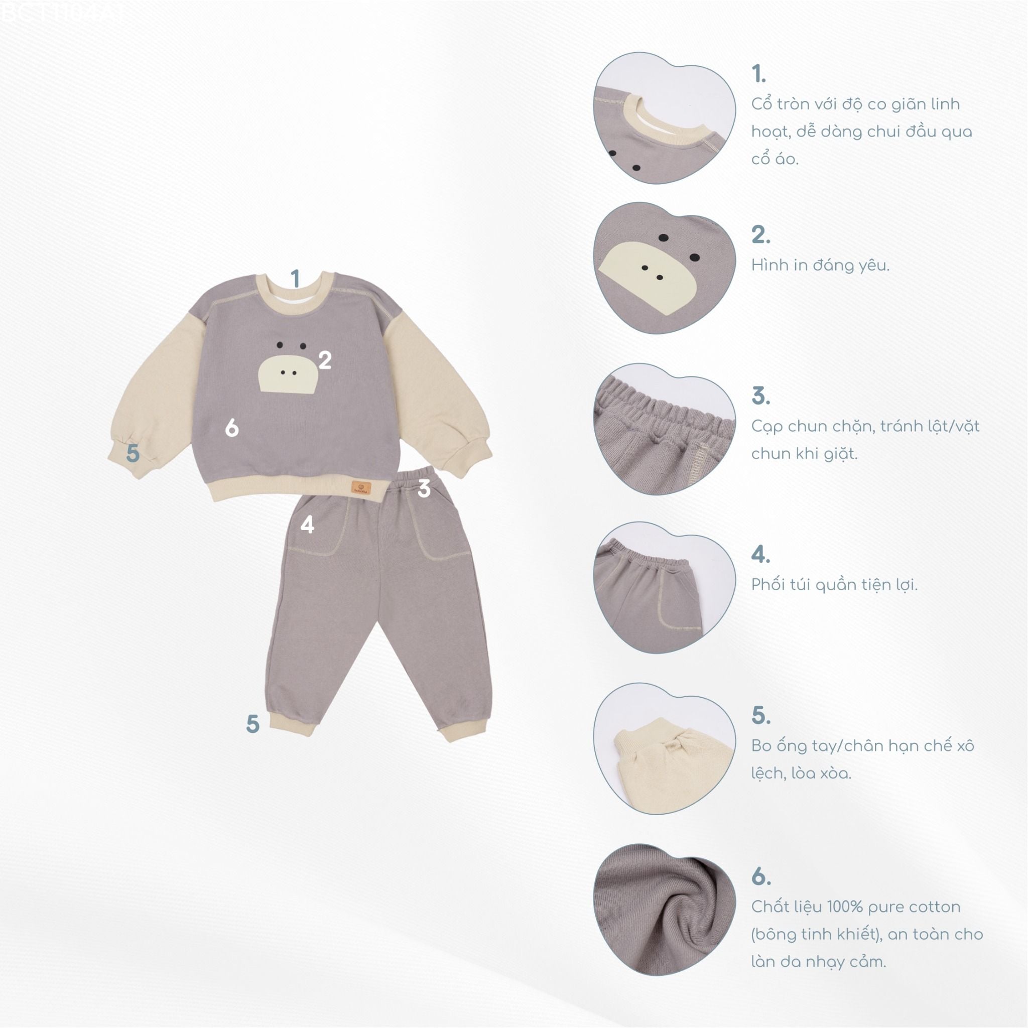 Chất liệu Pure Cotton của BU Baby đạt chứng nhận quốc tế OEKO-TEX 100, cấp độ 1 (mức độ an toàn cao nhất cho trẻ từ 0-36 tháng).