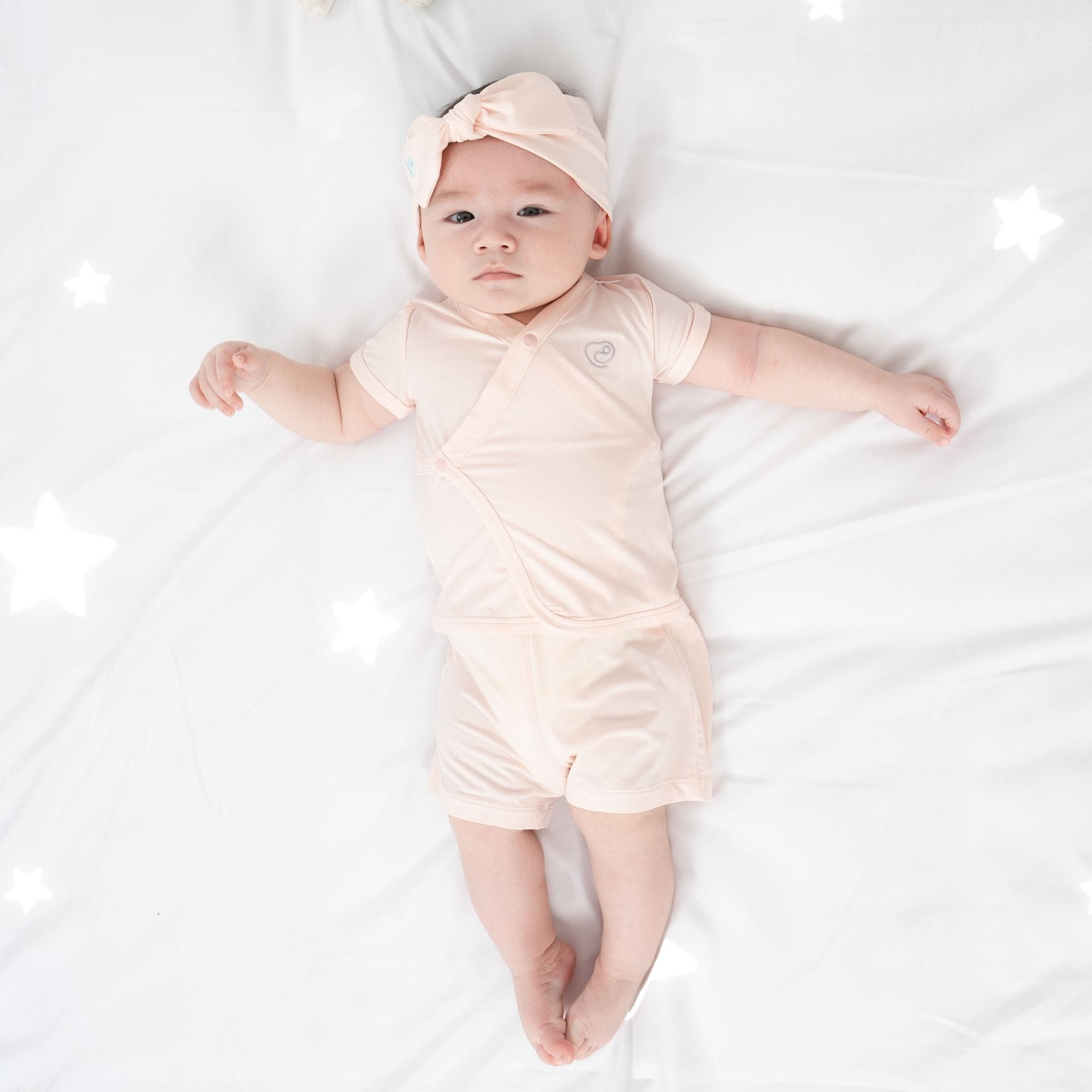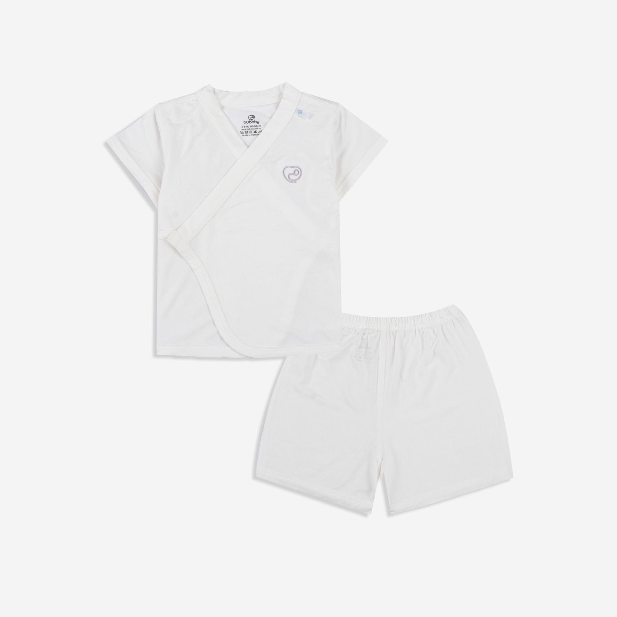 Bộ ngắn tay cài chéo là trang phục thiết yếu đối với các em bé từ 03 tháng. Thiết kế vạt chéo Kimono với dây thắt mềm mại cố định. Cúc bấm mềm mại, cởi/mặc dễ dàng. Cạp chun mềm mại, co giãn ôm "bụng sữa". Đường may flat-seam tạo mặt phẳng gần như tuyệt đối, tránh cọ xát. Chất liệu 100% premium bamboo (sợi tre) công nghệ Đan Mạch.