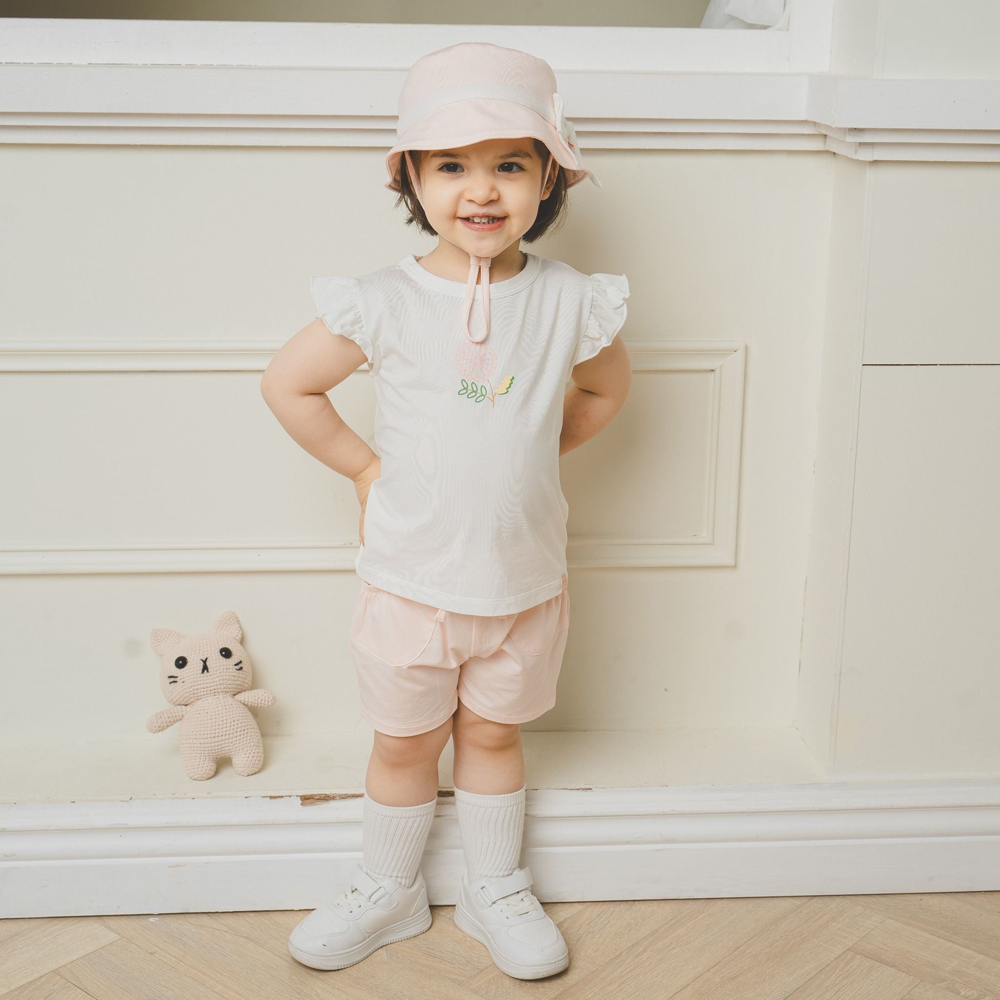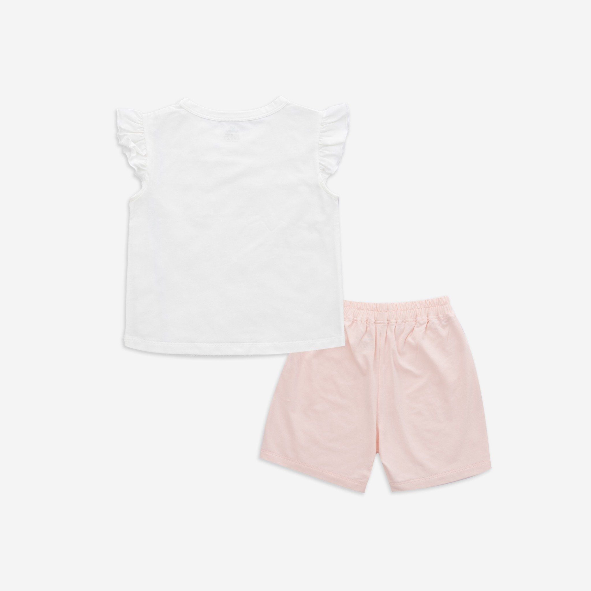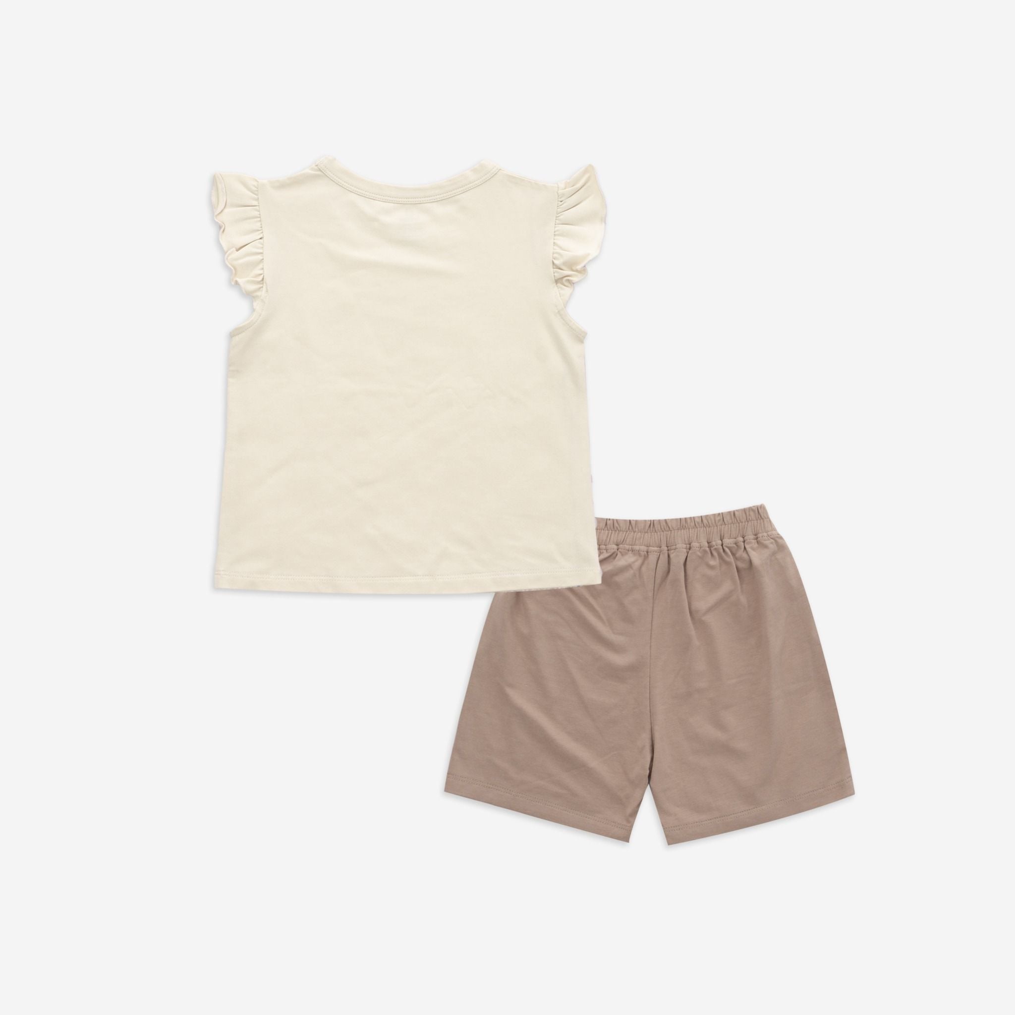 Bộ ngắn tay cổ tròn Kyomi với thiết kế chui đầu co giãn tốt, dễ dàng để mặc vào/cởi ra. Cùng phối bèo vai tạo điểm nhấn thời trang nữ tính và cạp chun mềm mại, co giãn ôm "bụng sữa" của bé. Chất liệu 100% bamboo cotton mềm mại.