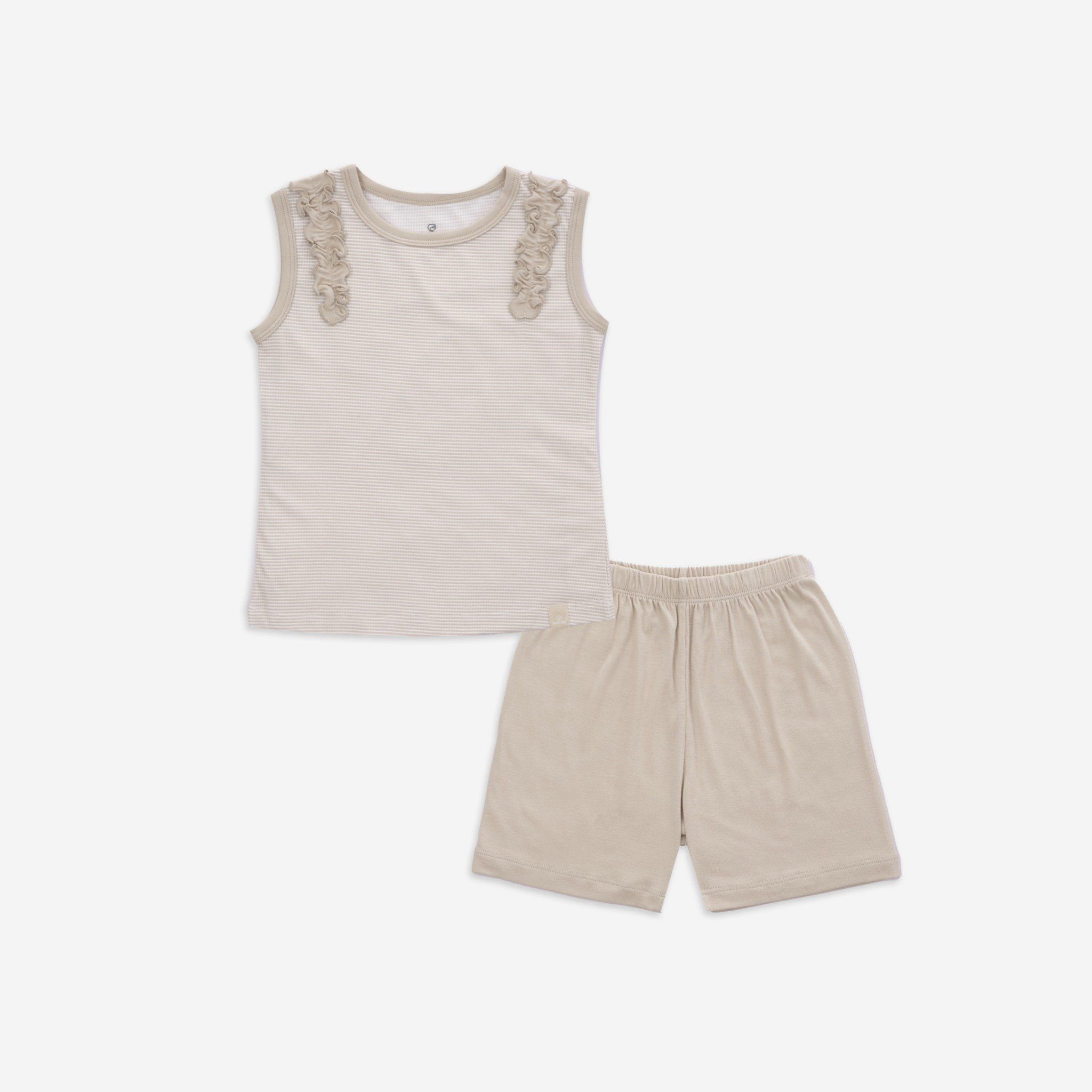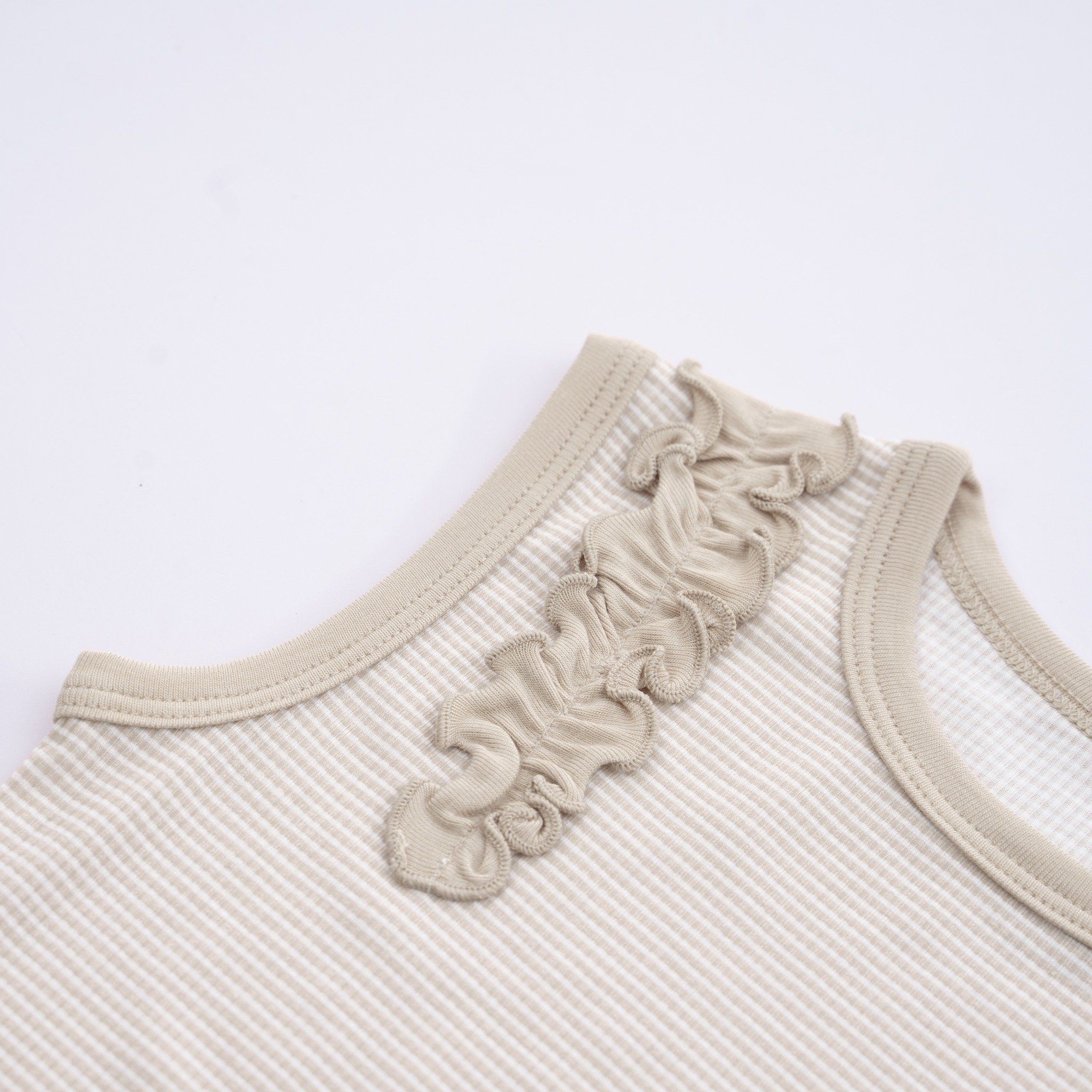 Bộ sát nách bé gái Siro với thiết kế giải phóng tay mát mẻ. Nhún bèo đáng yêu tạo điểm nhấn thời trang nữ tính. Cạp chun mềm mại, co giãn "ôm bụng sữa". Chất liệu Siro mềm mướt, an toàn cho làn da bé.