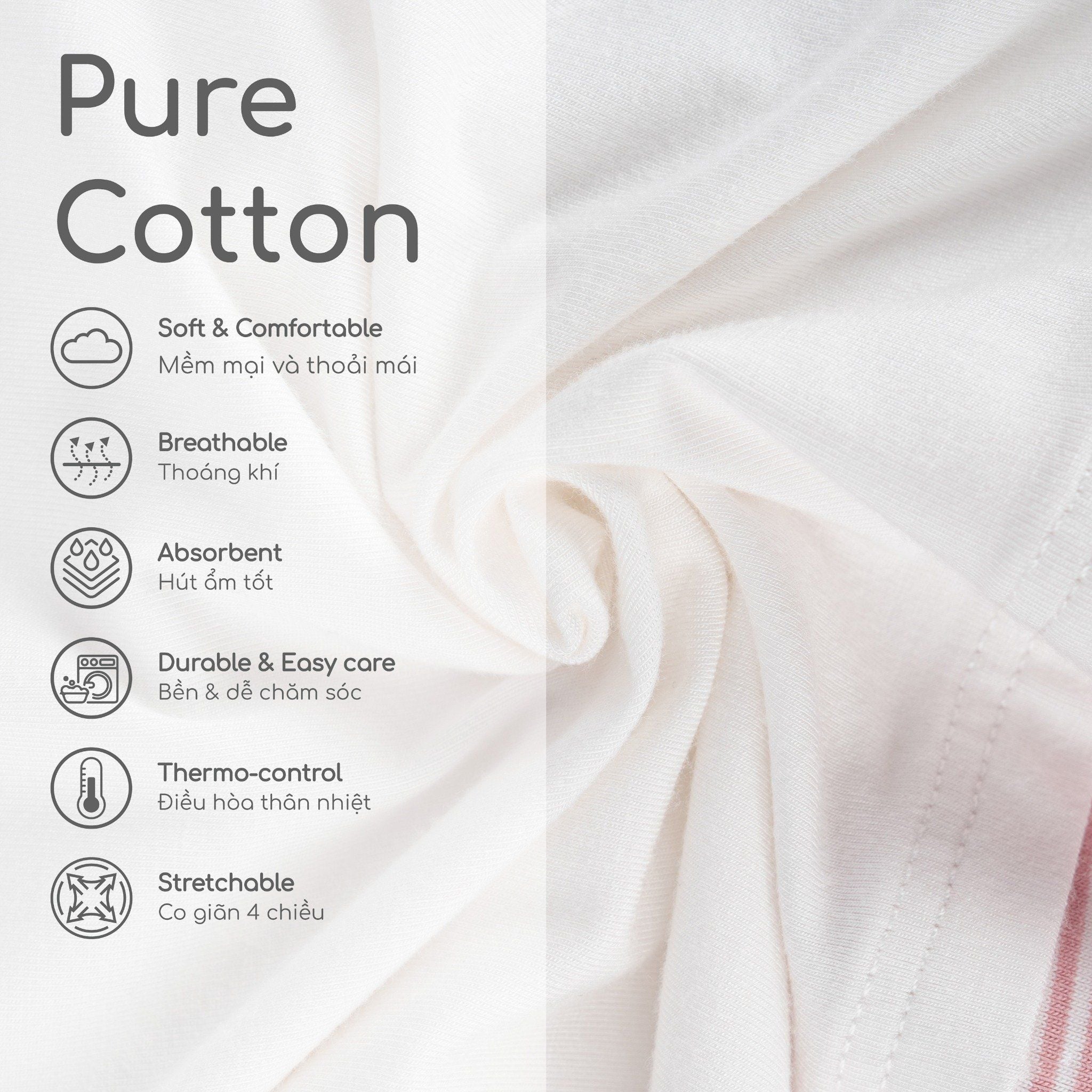 5. Thành phần sợi 100% pure cotton (bông tinh khiết), an toàn cho làn da nhạy cảm.