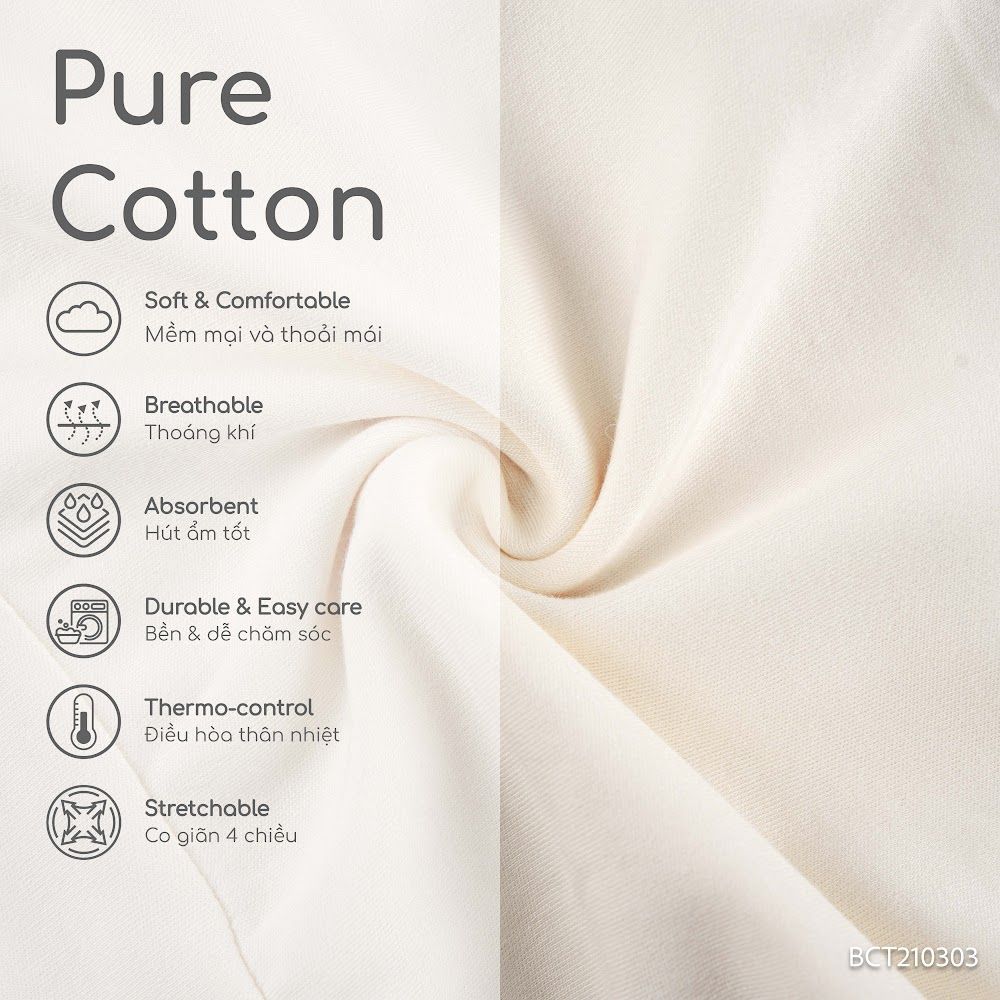 5. Thành phần sợi 100% pure cotton (bông tinh khiết), an toàn cho làn da nhạy cảm.