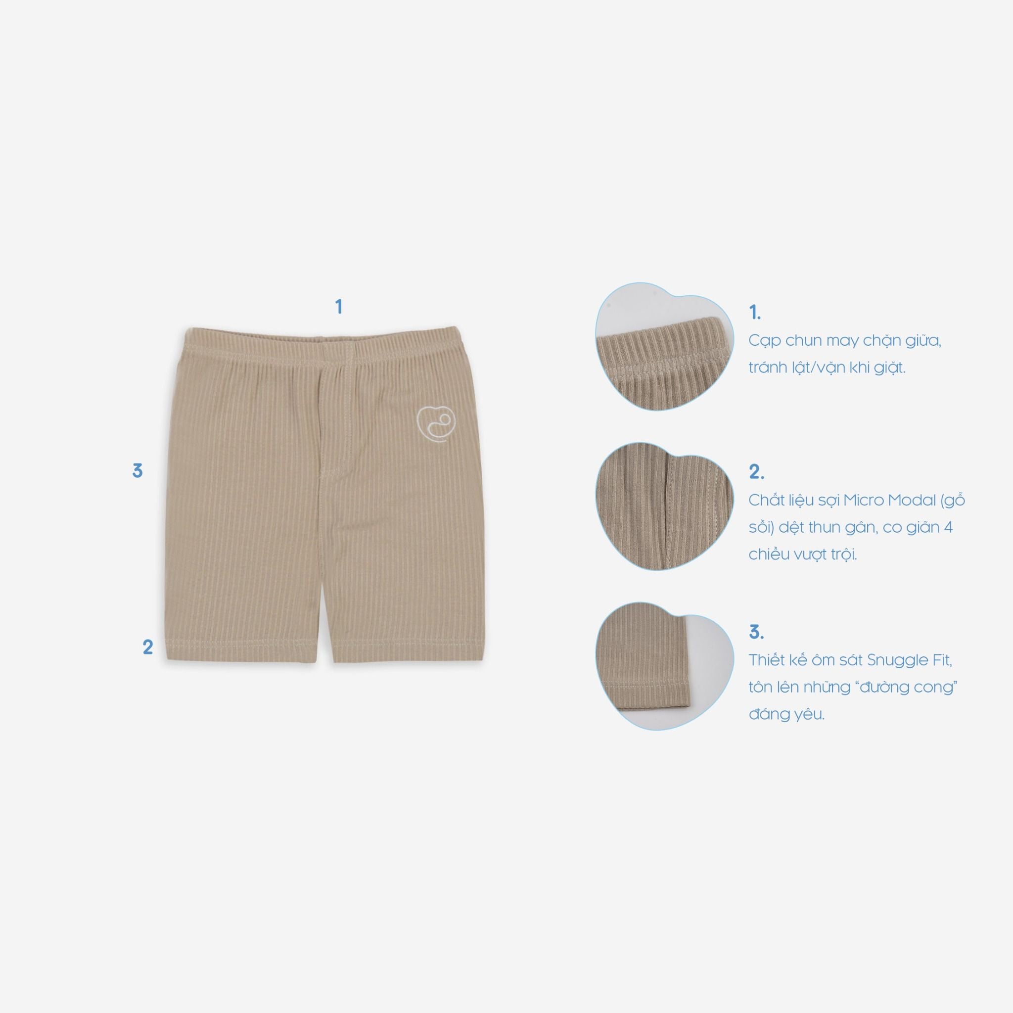 Short leggings are an essential outfit for babies from 6 months old. The slim fit design creates a dynamic look and highlights the "sexy" curves of the baby's adorable buttocks. Made from Micro Modal material and by super stretchy Borip weaving technology, our product brings your baby a comfortable feeling with softness and safety for sensitive skin.