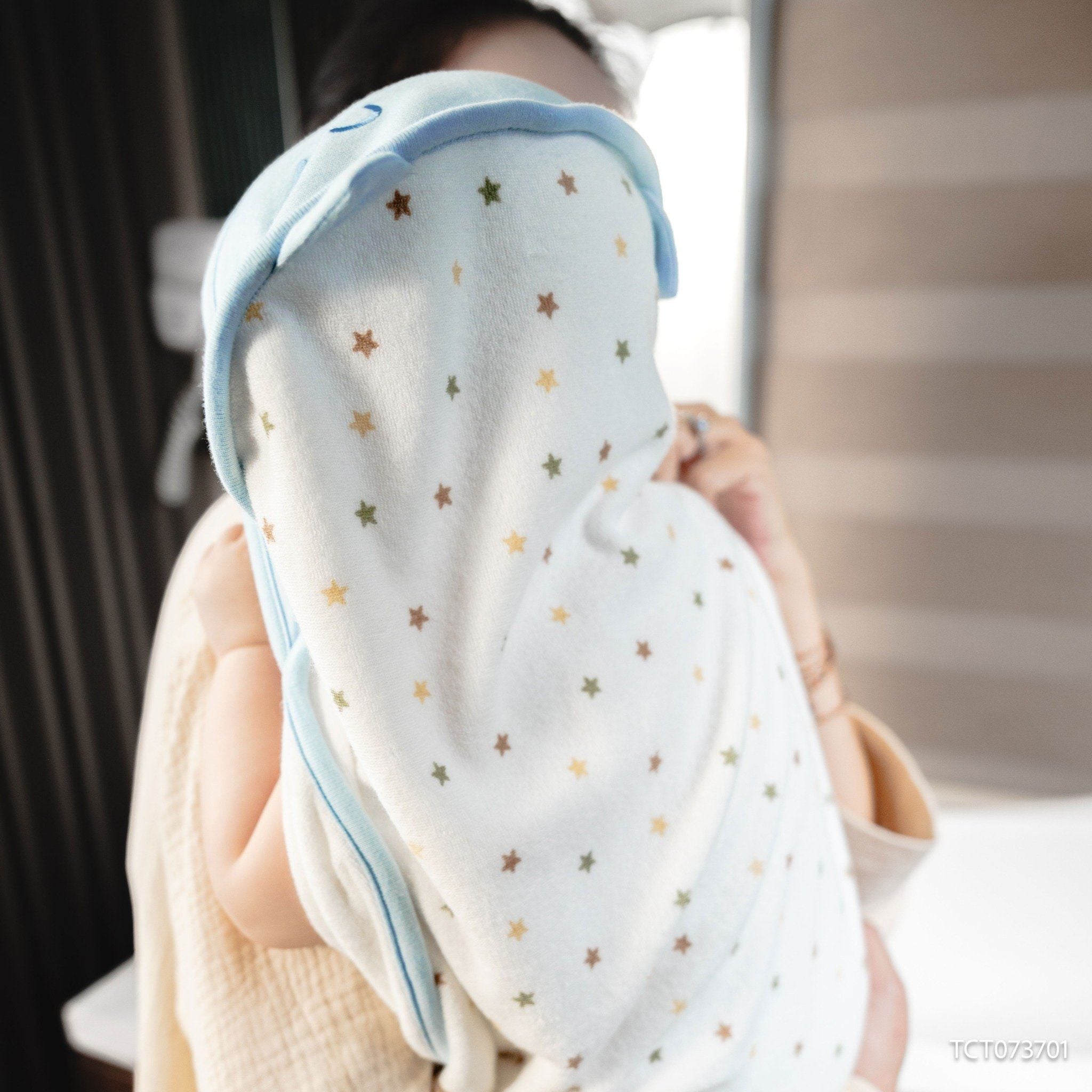 3. Cúc 2 bên cố định khăn, giúp giữ ấm bé tối ưu.