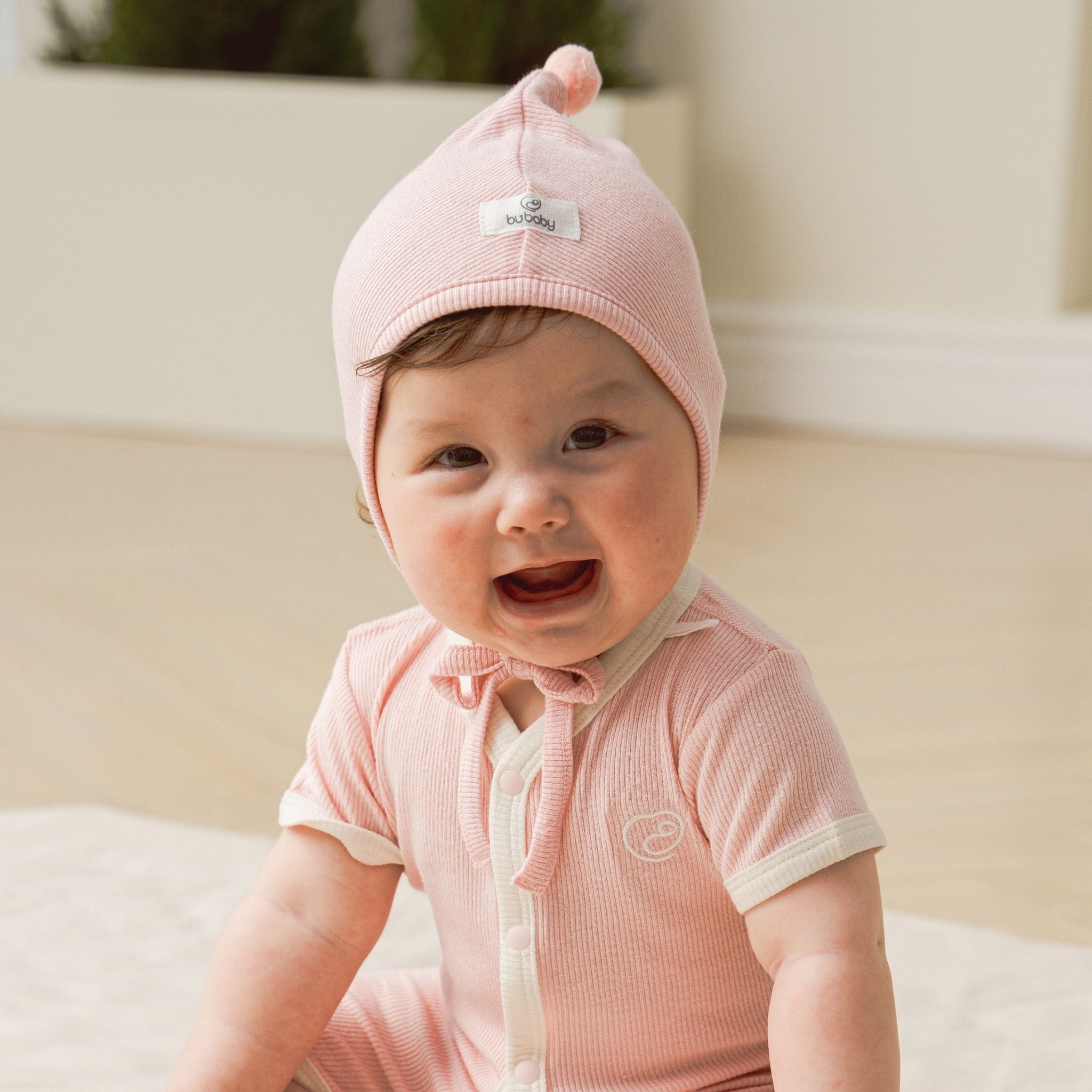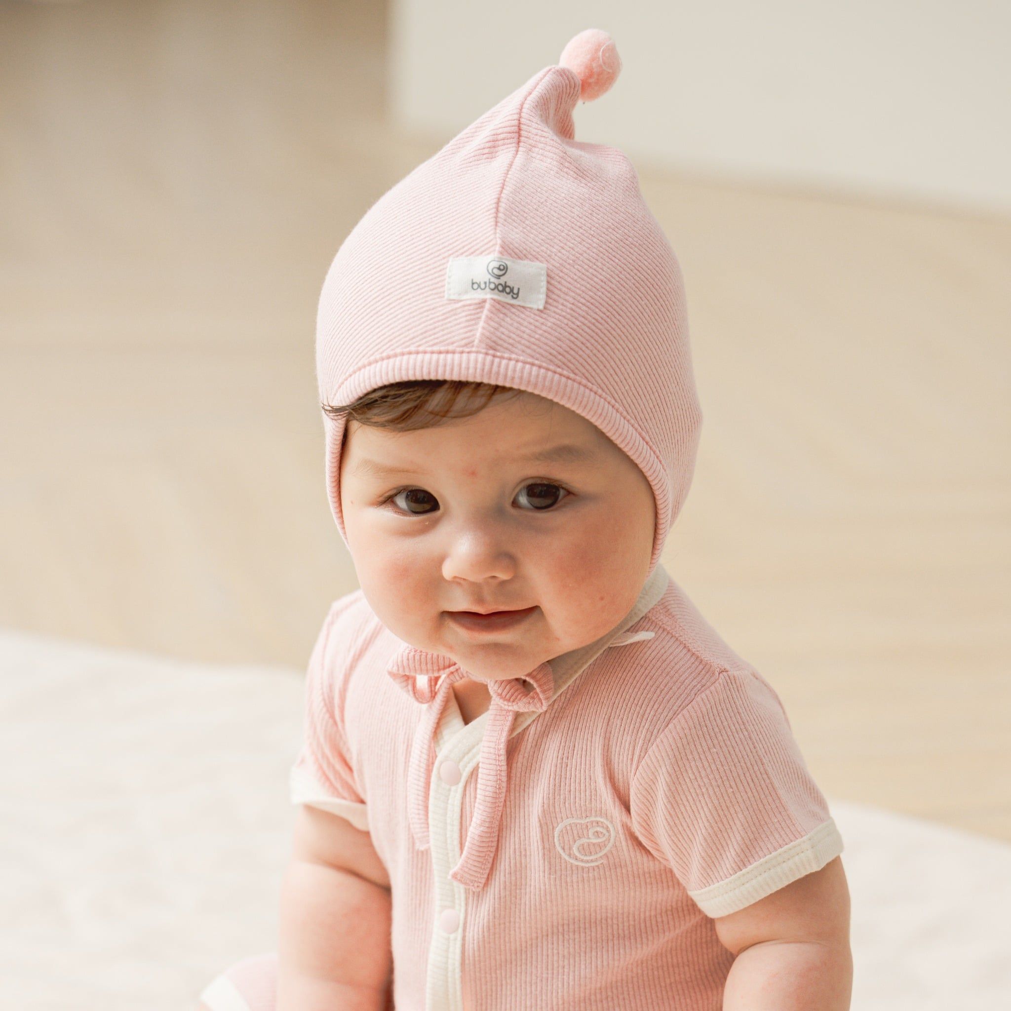 Mũ buộc dây là phụ kiện đáng yêu dành cho các em bé sơ sinh. Thiết kế của BU tập trung vào chất liệu mềm mại, thoải mái bởi đây là một trong những món đồ chạm vào da bé ngay khi chào đời. Cảm giác khi đội mũ "tựa như không", ngay cả vùng trán, tránh cọ xát khiến bé khó chịu. Đặc biệt, mũ có nút thắt là điểm nhấn mới lạ cho bộ trang phục của bé yêu.