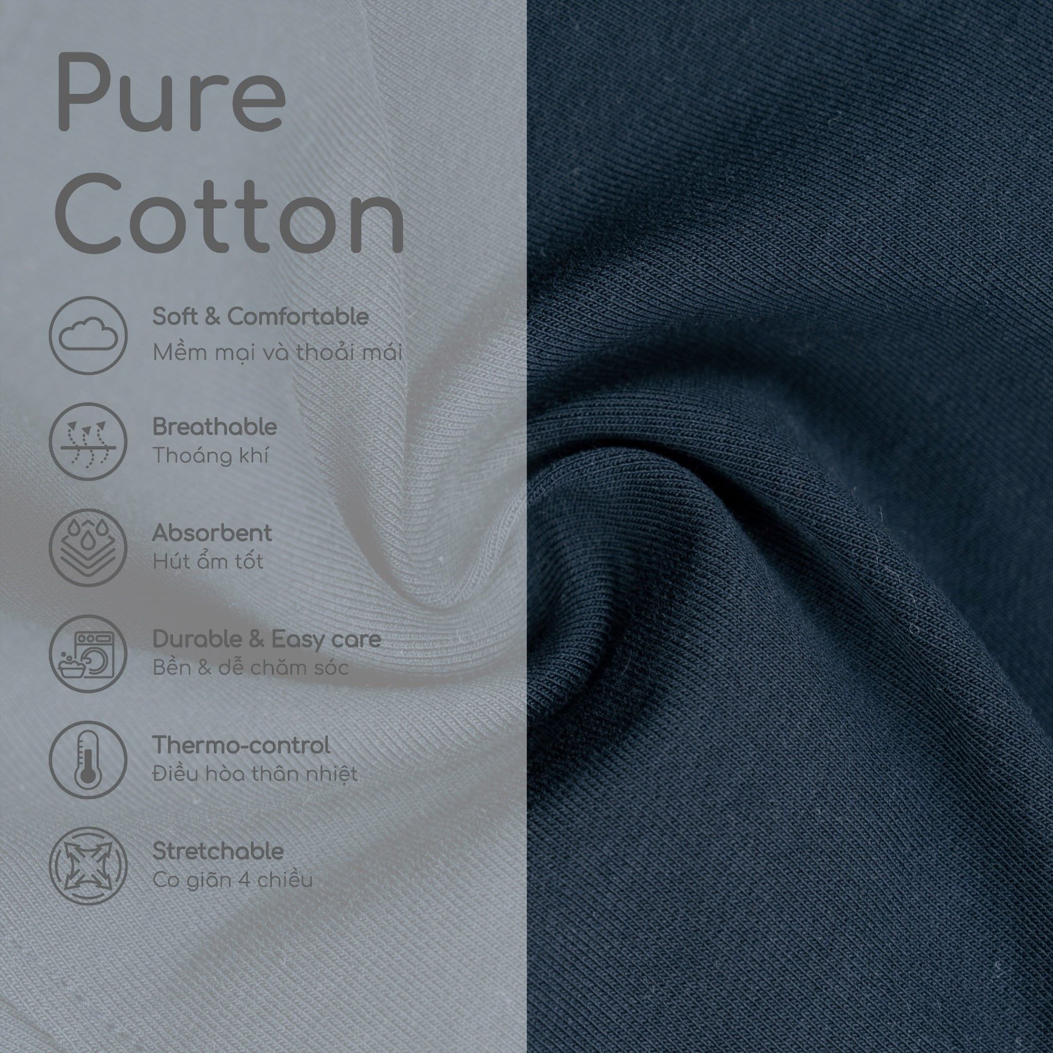 Bông hữu cơ mịn, mềm và chắc. Đây là loại vải lý tưởng cho làn da nhạy cảm của em bé vì nó được trồng và xử lý mà không sử dụng hóa chất độc hại. Bông trồng thông thường là một trong những loại cây trồng có sức tàn phá lớn nhất trên thế giới hiện nay, trong khi trồng bông hữu cơ giúp làm sạch không khí, nước và đất. Bông hữu cơ không gây nguy hiểm cho động vật hoang dã hoặc sức khỏe con người. Vì vậy, bạn có thể yên tâm rằng bạn đang nhận được sản phẩm tinh khiết nhất, đảm bảo một khởi đầu khỏe mạnh cho con bạn.