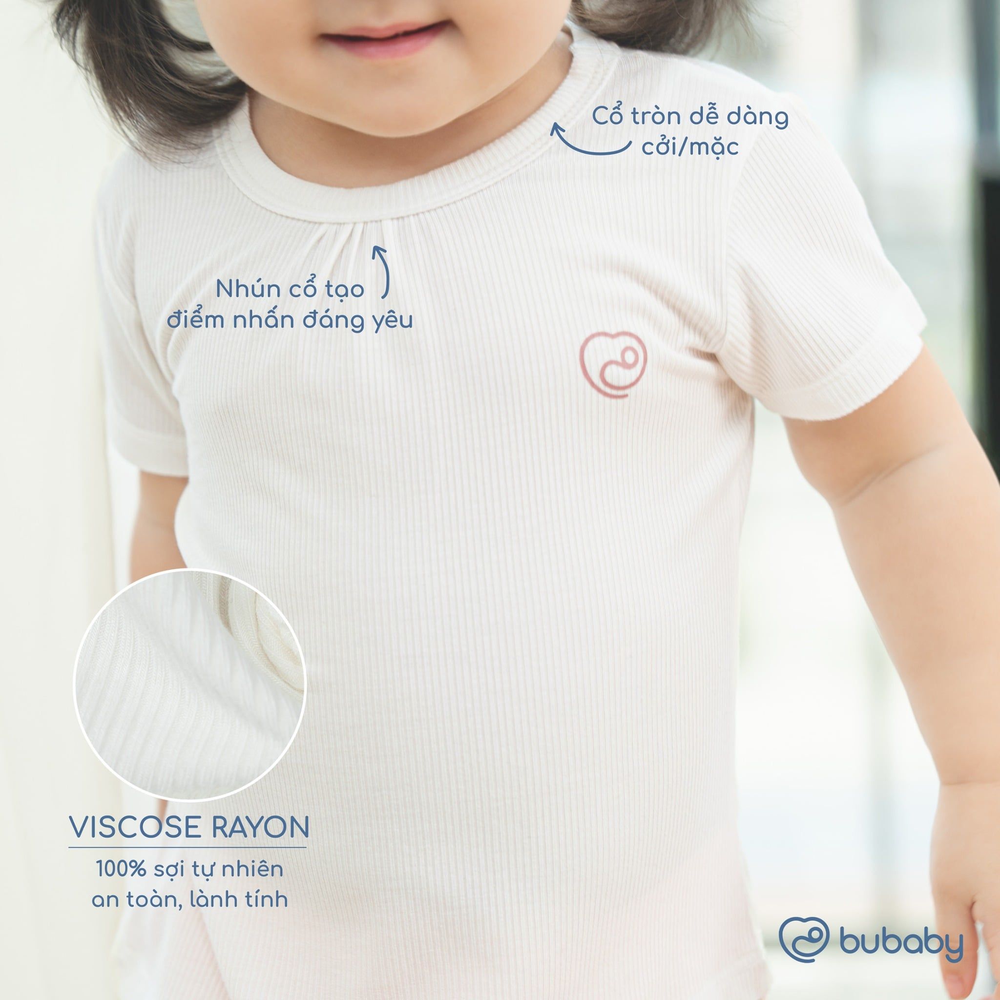1. Cổ tròn với độ co giãn linh hoạt, dễ dàng chui đầu qua cổ áo.